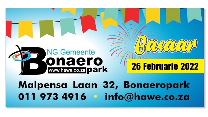 Saterdag, 26 Februarie | Vanaf 07:00 | NG Gemeente Bonaeropark